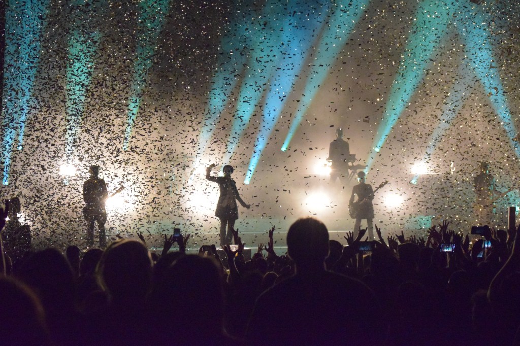 The stage darkened, the smog rose and the fans went wild! All nameless ghouls came out proudly and confident carrying their axes to punish those fans. The pit was packed and little boys and girls were among that crowd. Yes, six to ten year old kids were ready to listen to the pope recite those malignant lyrics. The sounds infiltrated my ears and along with the rest of the crowd I swayed side to side, and “bow down my soul to the god rock and roll”. Hypnotized? Perhaps, I blame the dark lyrics, the heavy bass beats and the ominous keyboard sounds. It was a religious experience, an unholy shamanistic ritual. As the pope sang to songs like “Cirice and “Square Hammer”, you could see girls being possessed and their bodies moved in a succubus style, as if they felt the force or making love to the songs. A spiritualistic night indeed. The set was not short, the fans got to experience songs like “He Is”, which happens to be one of my favorites. The highlight of the night had to be when the frontman had a monologue, about making one another explode sexually, about experimenting with your partner and reaching that climax. An act which can be named seductive, smart and humorous at the same time.The band has all the right ingredients, take my money, I want your music, your shirts, it is pop-rock darkened by the spirits of the underworld that will posses your impure soul; join us in this ritual and worship Ghost B.C. as we have.